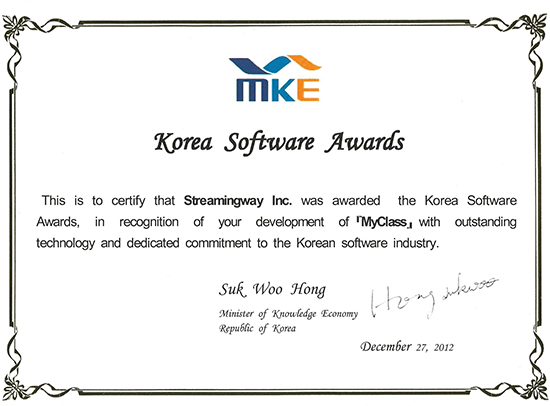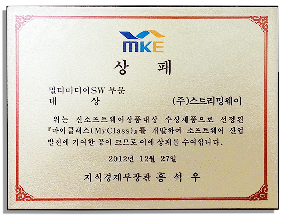 수상 내역 :신소프트웨어大賞 지식경제부 장관상