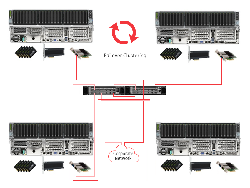아래의 그림과 같이 동시에 하나의 데이터를 공유하며 블록 단위로 동기화되어 한대의 서버와 같이 작동하게 됩니다.